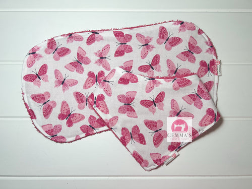Hot Pink Butterfly Bib and Burp Cloth Set