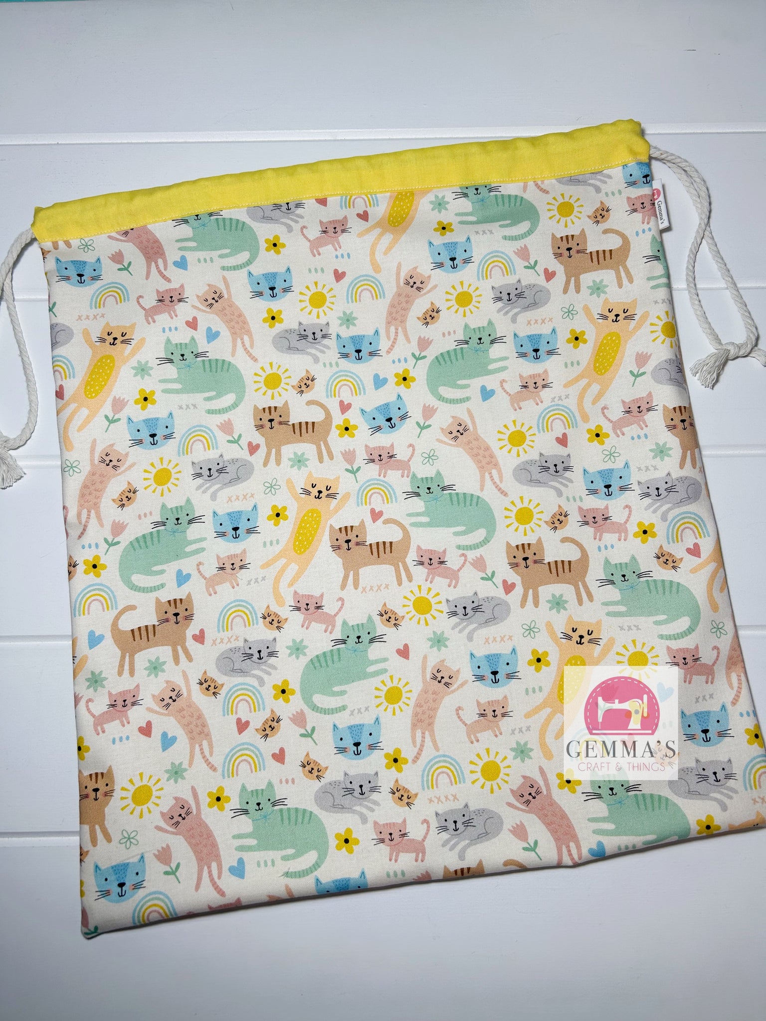 Library Bag Measures approximately 36cm wide by 40cm tall. Lined with plain cotton with a drawstring closure easy for little hands to use.