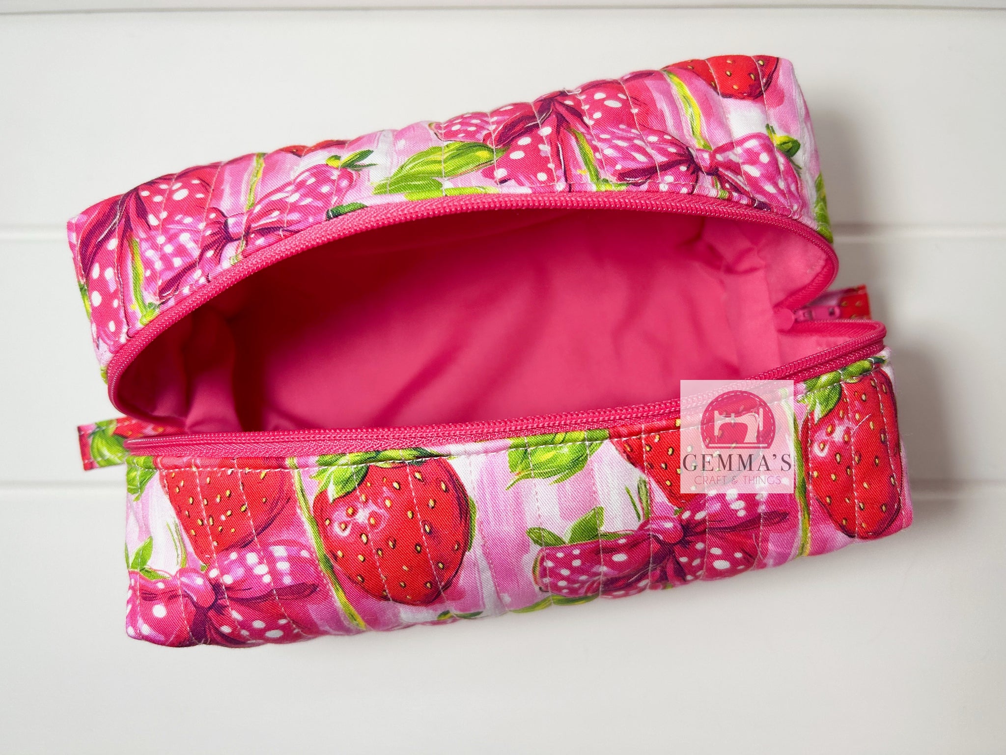 Pink Strawberry Quilted Pouch